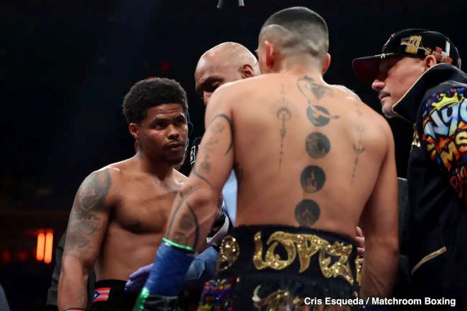 两位拳手都是美国拳坛新星,都处于各自拳击生涯的巅峰时期。最终沙克-史蒂文森(25-0,11KO)以三个119-109的点数基本完胜特奥菲莫-洛佩兹(22-2,13KO),夺得了WBO/《拳坛》杂志140磅的世界拳王金腰带,并成为了四个级别的世界拳王。