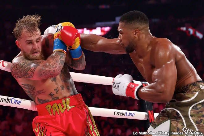 约书亚在这场比赛中第6回合KO了杰克-保罗,赢得了胜利。杰克-保罗赛后去了医院,下巴骨折安装了两块钛板,还拔了几个牙齿重新种牙,钱是赚到了,但身体也活受罪。有消息说约书亚这场比赛酬金是1.4亿美元,交税5800万。也有媒体报道说约书亚和杰克-保罗酬金都是9300万美元。