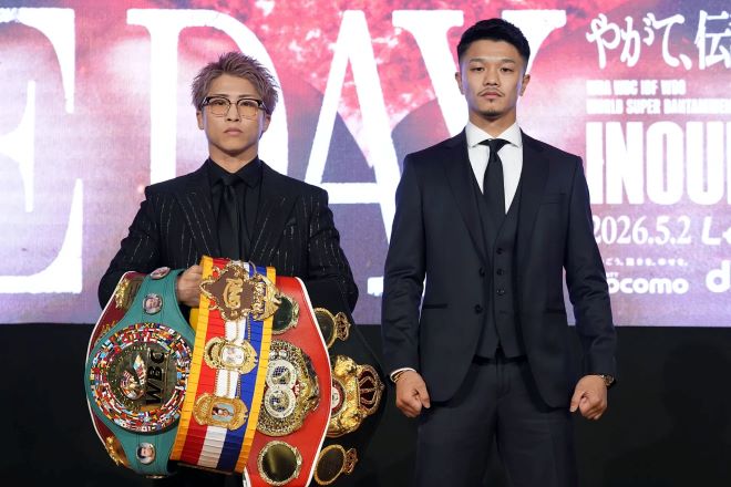 今天,现WBC/WBA超级/IBF/WBO超最轻量级拳王日本“怪物”井上尚弥(32-0,27KO)和前三个级别的世界拳王日本同胞中谷润人(32-0,24KO)在东京召开了赛前首次新闻发布会,宣布了5月2日的超级大战。两人将在东京巨蛋体育场进行一场预定为12个回合的超最轻量级拳王争霸战,井上尚弥卫冕122磅的全部金腰带。